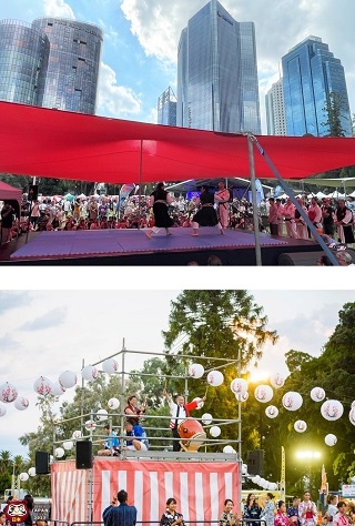 今回のパース日本祭りではアデレード居住の津軽三味線アーティスト、只野徳子氏による公演、パースの人気グループ「太鼓音」とのコラボレーションが実現した他、パース日本祭りでは初となる盆踊り大会が行われ、大東京音頭、東京音頭、炭坑節、ドラえもん音頭、ダンシング・ヒーローに加え、当地居住の在留邦人の方々により作詞・作曲・振付がなされた「パース音頭」が初めて披露されました。